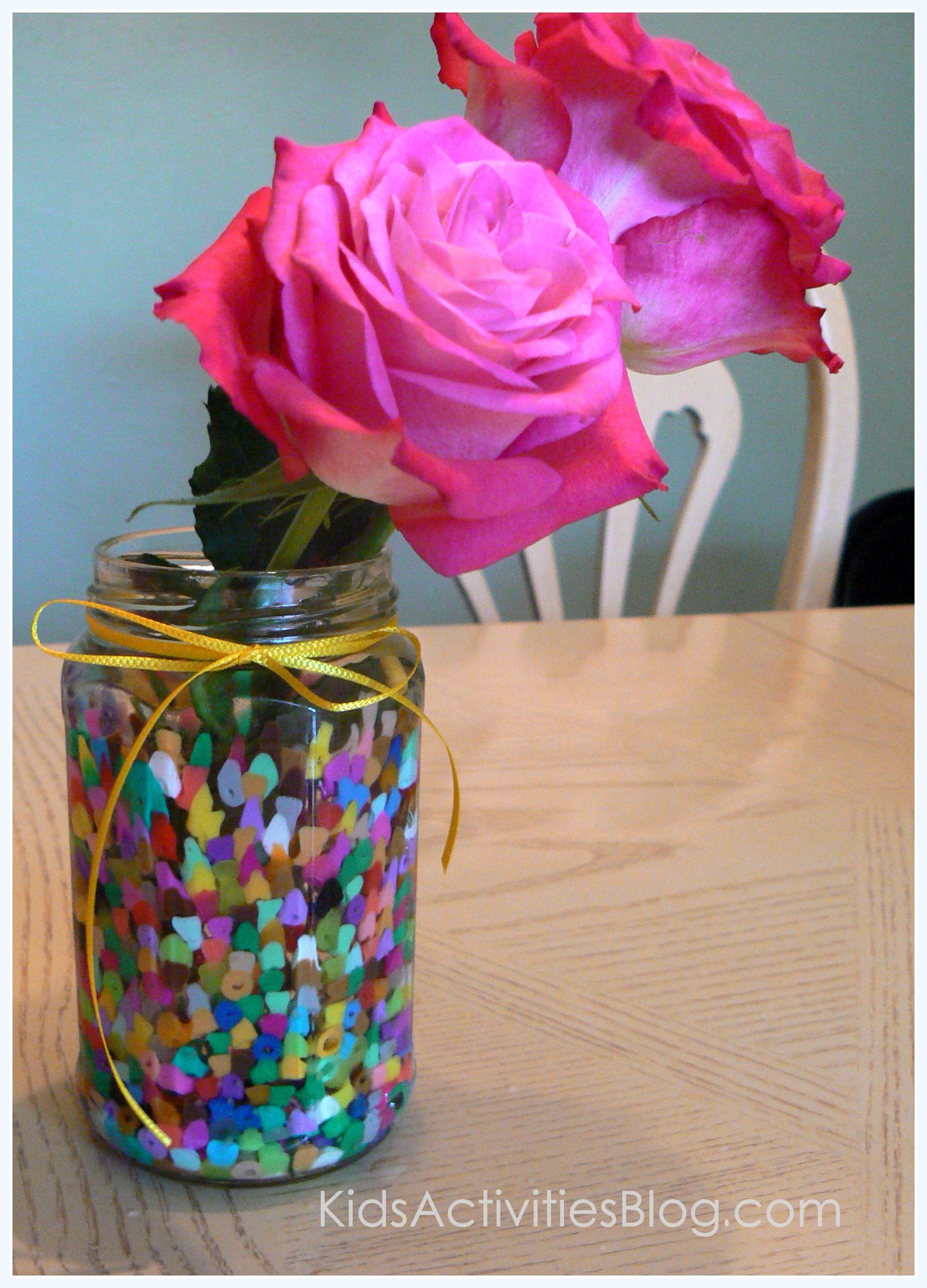 - To make a melty bead vase, spray a jar or clear vase with cooking spray