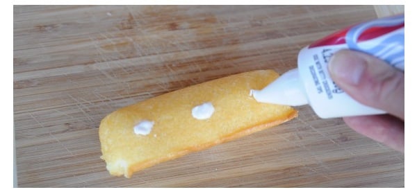 Start with your basic Twinkie. ย Roll it over so one side faces up.