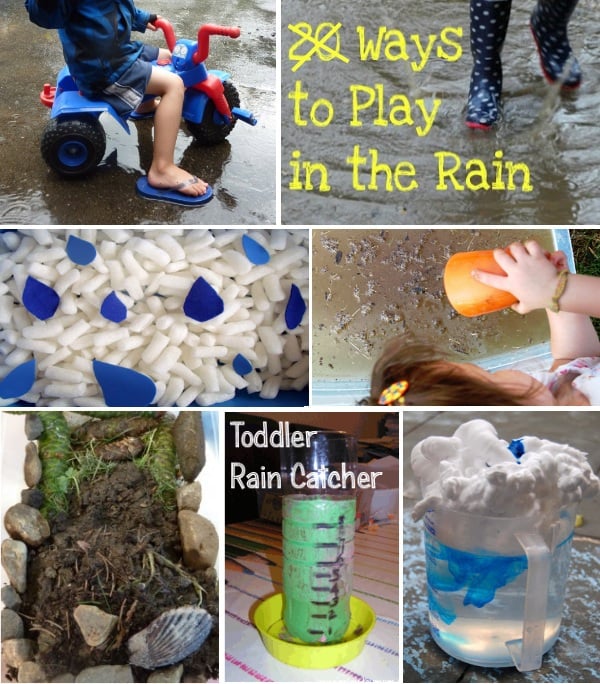 Make, Do & Friend has a great sensory tub idea to play with rain indoors.