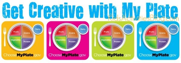 Using our fancy MyPlate plates at meal time has sparked some really interesting conversations. It is a springboard for so many different math, cooking, health and choice conversations. Here are a few ideas where this simple MyPlate activity could lead:- Math: This could start as simply as talking about four parts equaling a whole and progress to an in depth discussion of proportional equations. Using food, sneaking in some new concepts is really easy. Having your child use the MyPlate graphic template to make their own graphic in a size that would be portion-appropriate could be a fun activity as well.