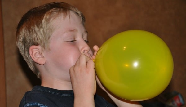 Once the balloon was inflated, my son wet the tip of the glow stick and wiggled it down into the balloon while holding the open end of the balloon tightly closed around the stick to keep the air from escaping.