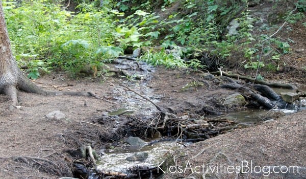 We went back last year to see if the water was still following the new path. ย I couldn’t tell, but the kids were positive that they had changed the course of stream history.