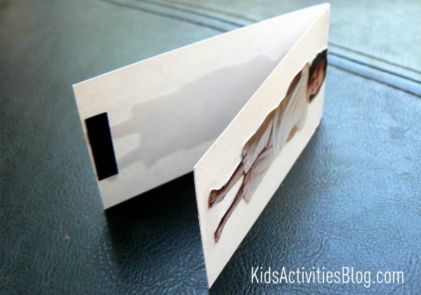 Children can help in the making of this gift by using their glue sticks to help glue the photos to the card stock. They might also enjoy picking out the outfit they will wear for the picture or even including props like a pet or a favorite stuffed animal.