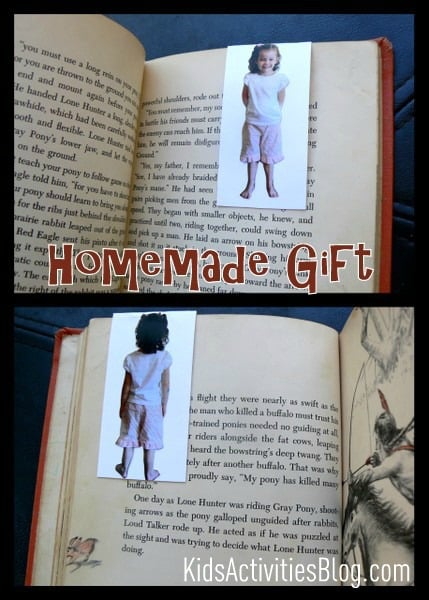 We’re a book-reading family; so bookmarks are also a good gift choice. They don’t take up much space; they get used a lot, and they are inexpensive to mail. I figured if I could find a particularly cute way to make photo bookmarks then I would have a pretty good
