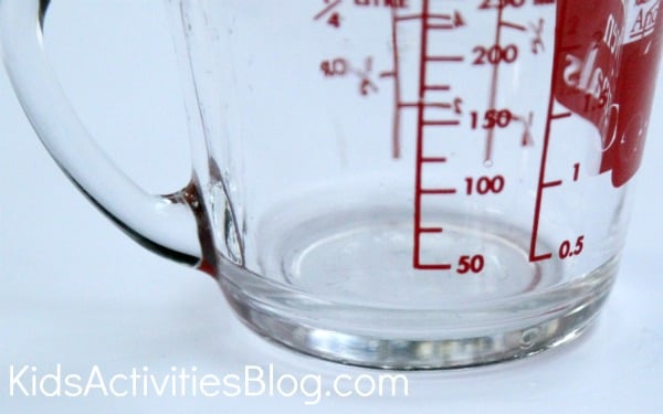 You could have the child use the mL side of the cup, if subtraction is desired or make it more complicated by using the cup measurement side for manipulation of fractions. ย If you have a pre-formal-math level child, this is still a lot of fun by just guessing what is going to happen.