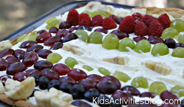 I love this recipe. It is modified from the fruit pizza recipe that I lived on through college. It is super easy and my boys can complete almost all the steps without too much motherly intervention while expressing their creativity.