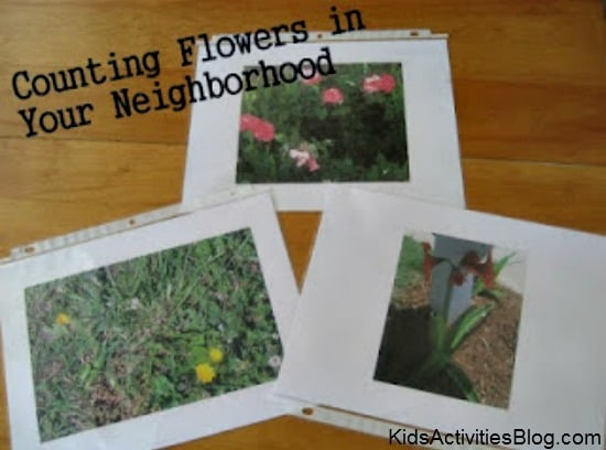 Young learners may enjoy collecting objects they can manipulate and feel from around the neighborhood. Once they have had some counting experiences with concrete objects they will be ready for counting semi-concrete objects like the flowers in our pictures.