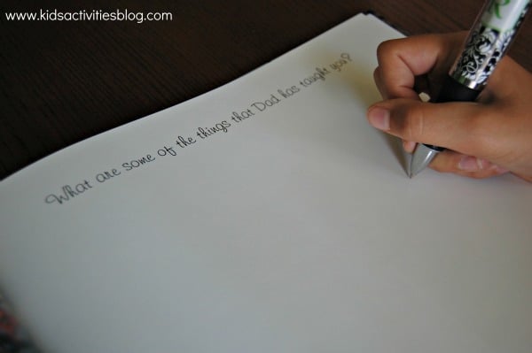 Just pick out your favorite pictures of Dad with his kids, upload them to one of your favorite photo-gift websites and make a book leaving blank spots and questions for the kids to answer for the captions. I like to use Shutterfly, as they have the option to create a page exactly as you want it to look, not just a “fixed format”.