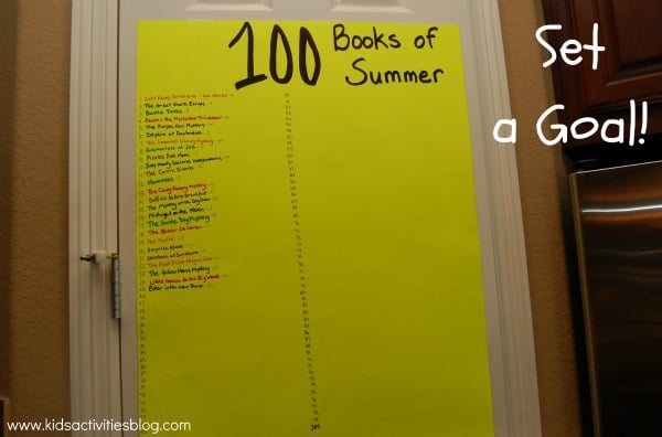 8. Set a Goal for Reading for the summer – and have a reward: For the past 2 summers, we have set a goal to read 100 books together as a family. ย A challenge always motivates my kids. We have a big poster than hangs in our kitchen and we list every book that we read. ย And though, we have come really close to 100, we have not been able to top it before we go back to school. ย We always seem to make it before the first day of fall though!! Regardless, we celebrate our summer of reading with a family visit to the local yogurt shop!