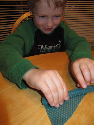 We opened up a cool candle rolling kit that Grandmother C. found at