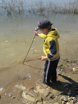 Recently Nicholas said that he would like to go do something with just the two of us, “like we used to do before Rachel was here”. So I let Adventure Kids watch Rachel for a little while today so I could get some quality time with my little guy. I helped him go over a list of all different kinds of things that we could do today and let him choose. He decided that he wanted to go exploring around the lake so we packed a lunch and the usual nature walk supplies and hit the road.
