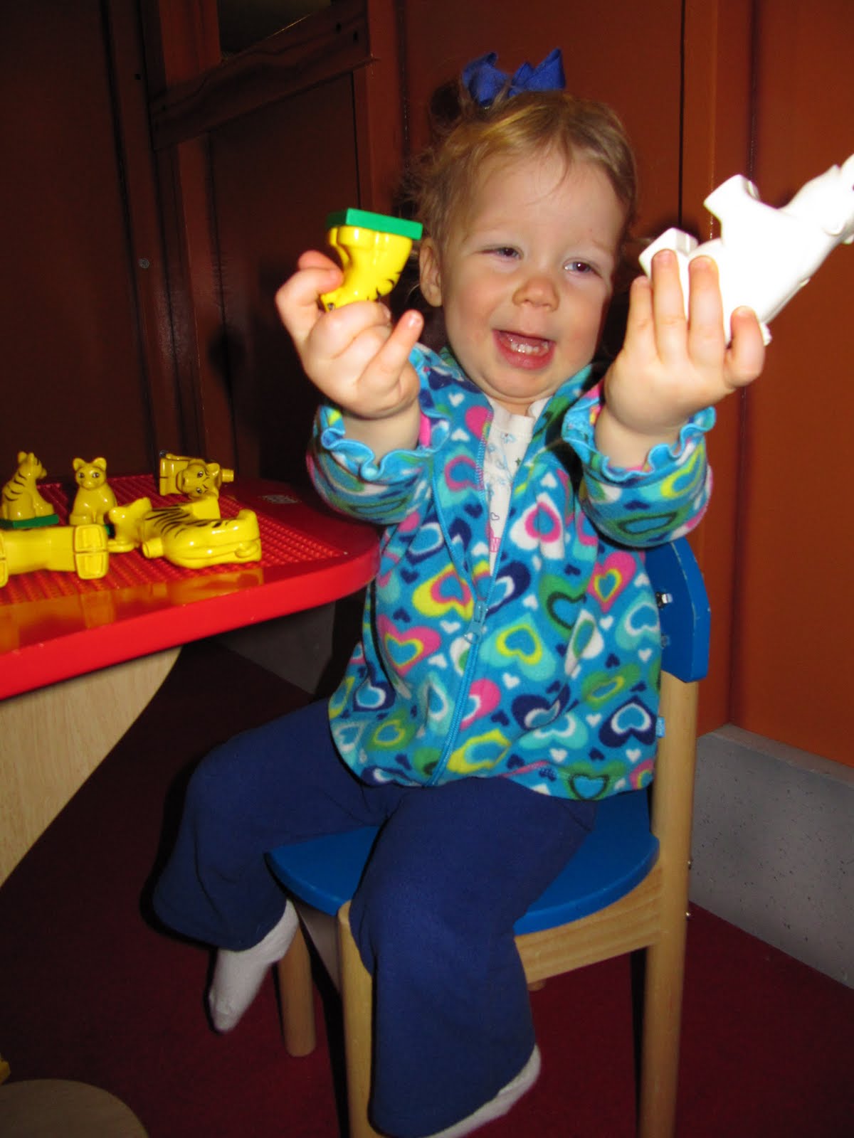 There is a magnetic toy area where you can learn about magnets and even build small structures with them. There is also a Lego/building block area with table and chairs for little ones to sit and build with Duplo blocks. They even have Duplo animals that can attach to your structures. There are even some giant cardboard “bricks” to build a life-size fort.