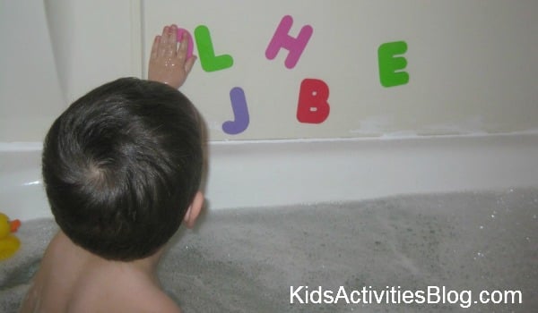 I am sure we will eventually come up with new ways to play with these letters, but in the meantime, he is learning his alphabet while getting clean.