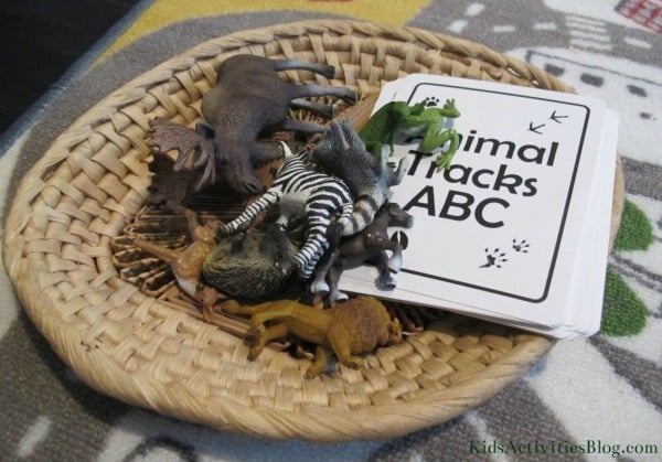 Animal Track ABC Cards I purchased recently from Etsy (thank you Pinterest for this one!). I didn’t worry about covering the whole alphabet, just grabbed enough for my 3 year old to get a good learning activity out of it.