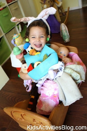- After you’ve had fun filling a room with silly things and taken that picture, your child will likely not want to stop creating silliness. ย Help your child herself dress up in all manner of silliness and take a picture of that too!