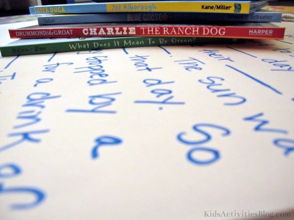 I will admit it… I saw this idea on a printable kids menu at one of our local favorite breakfast spots. The light bulb went off in my head. Brilliant. Create a story by filling in the blanks. The great part about this activity is that it extends across a spectrum of ages and levels of literacy. So you can adjust it depending on your child. My child is 3 years old so this image shows a very simple version of the activity. I wrote a story with marker on a good sized piece of paper leaving blanks where NOUNS (PIGS, TRAINS, MOUNTAINS, etc) and some VERBS (PIGS PLAY, TRAINS CHUFF, MOUNTAINS STAND, etc) should go into the story. If your child is ready, combine two blanks for an ADJECTIVE and a NOUN (PINK PIG, LOUD TRAIN, TALL MOUNTAINS, etc). If your child is even beyond that level have him fill in the blanks himself by reading and maybe even writing the story himself. My son truly enjoyed the exercise and we’ve only just begun story telling 101 in our home. preschoolerstorytellingI started with a very simple story with mostly nouns, a few verbs and one or two adjectives. The next time we do this activity, I’d like to sit down with my son and write the story out with him. I have several of these “Fill in the Blank Story Sheets” already made by hand for effect. There are so many great ways to integrate story telling into your home. Don’t get me wrong, I work at this stuff every day. In fact, I wrote a whole post about it, listing the ways we can easily integrate story telling into our daily routine. I frequently reference this post as a reminder.
