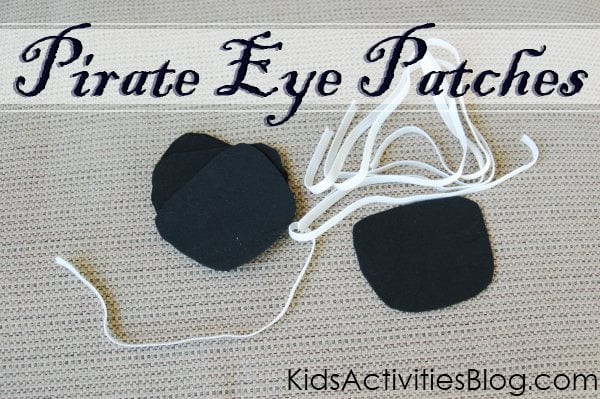 The eye patch. We cut the black “portion” out of felt. We cut two slits on the sides of the “patch” and threaded elastic through them, knotting the ends. Viola.