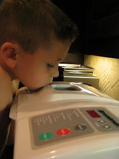 A few months ago, we picked up a breadmaker!!! Thanks to my friend Holly O…I didn’t even know she was the person who offered it up. We’ve made 3 loaves of bread so far. First one turned out flat because I didn’t set the loaf size high enough. Second loaf was a white bread that turned out good. Third loaf was a 100% whole wheat loaf that was dense but still yummy.