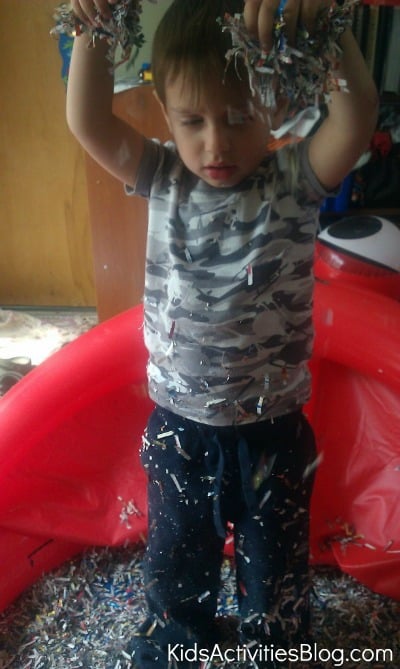 Yup! He keeps asking when we can play with the shredded paper again! I guess it will be soon!