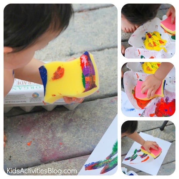 To extend this activity for some painting fun, try making sponge prints with plain water or by throwing water-soaked sponges onto an outdoor painting surface (like a wall, sidewalk, fence, or deck). You could also try making sponge splatter prints by dropping paint-soaked sponges onto your paper, too. There are so many fun ways to play with paint! Check out these other painting projects: