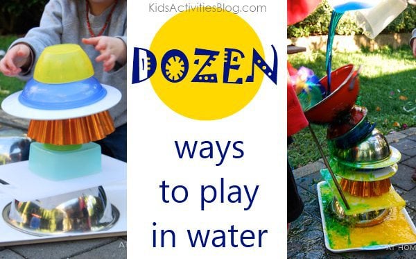 kids create “waterfalls” as they poured the water over their towers of items. This will be sure to entertain my kids for awhile!! Thanks