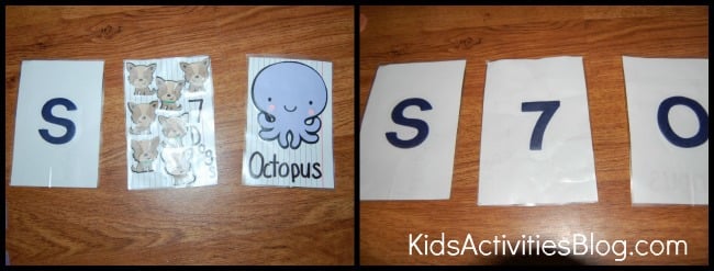 Having the animals name written on the back is also an additional practice for for letters. When she looks at L card she will read back L-I-O-N to me.