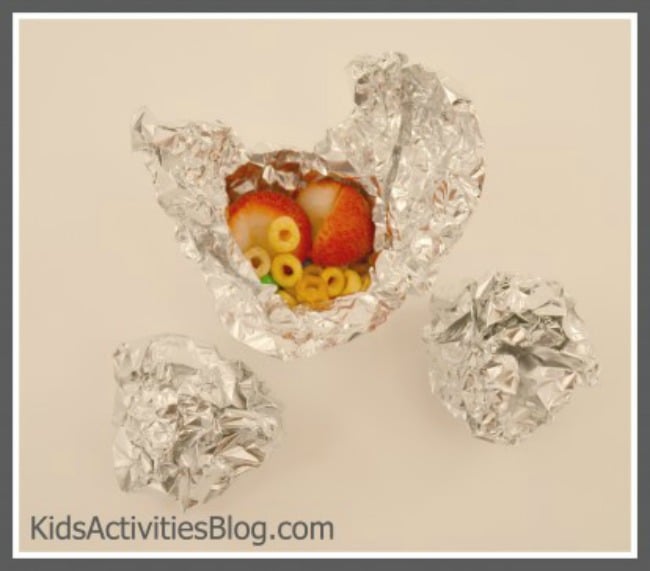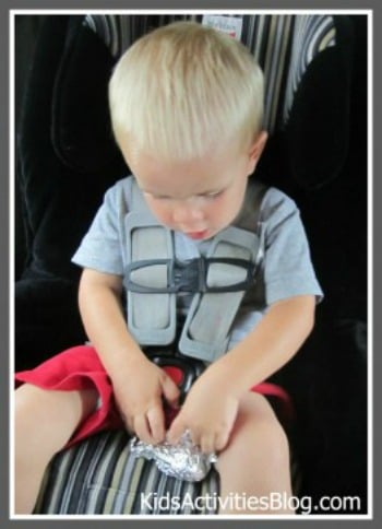 3. Gently crinkle and crumble the foil into a ball; and add an extra layer or two of foil for those really clever little ones!
