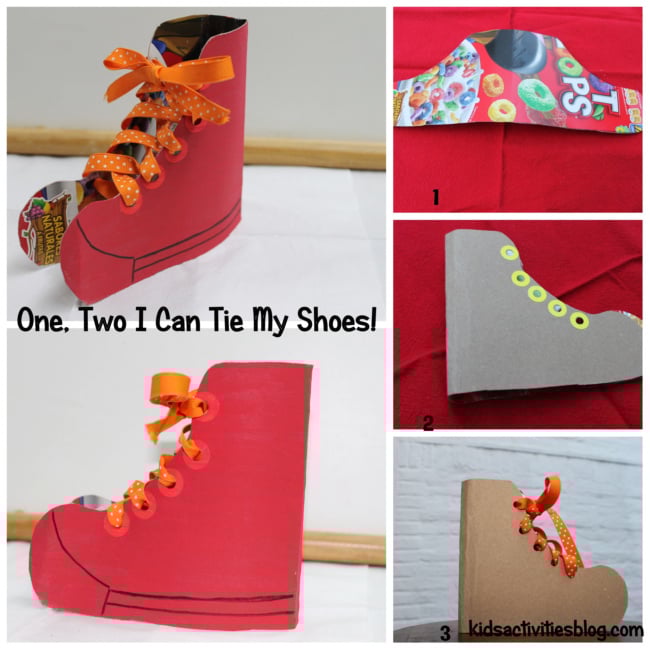 Is your child at that stage where they are learning to lace but still haven’t mastered tying? Lacing and tying are excellent activities for children to develop fine motor skills and hand-eye coordination. This early learning shoe activity will help encourage them in these new skills and they will have so much fun in the process. First, you need a piece of thin cardboard. I used a cereal box and I made my shoe template on it. Since it’s three dimensional, make sure to draw your shoe on both sides as shown above in picture #1. Next, punch holes in the cardboard and add reinforcements stickers around the holes. This will strengthen the holes and keep them from getting torn after the first couple of times of being used. Then, they are ready to paint their shoe how ever they wish. Lastly, add the shoe laces or colorful ribbons. My number 3, in the picture above has the laces just to give you a visual but I wouldn’t lace it until it’s painted and dried.The Quirky Mommas love fun hands-on activities like this to encourage early learning and development of fine motor skills. Here are a few other fun ideas to keep you little child’s hands moving and learning while they have fun: