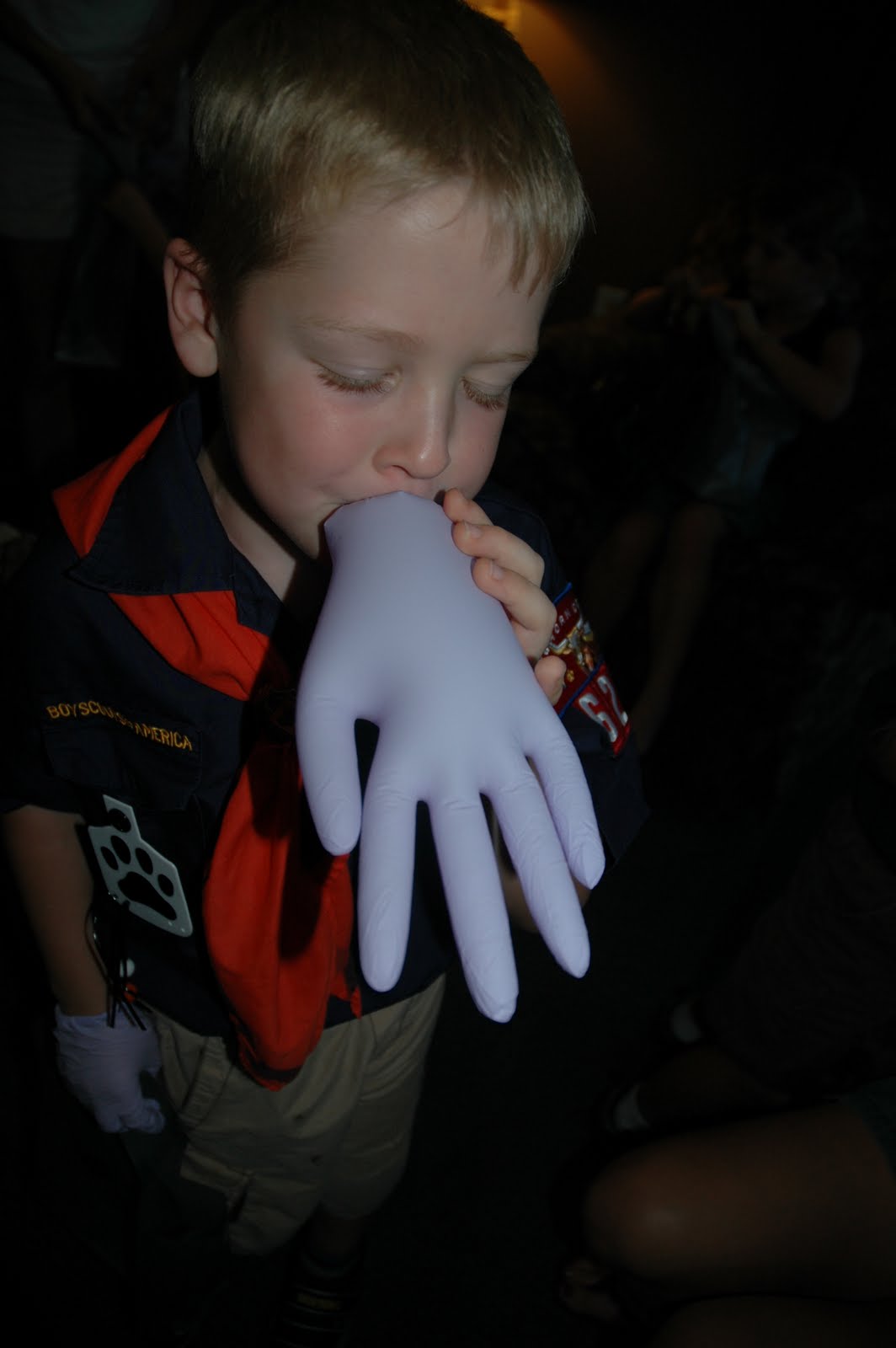 Dr. Wyatt gave each boy a goody bag complete with a new toothbrush, toothpaste, floss, finger puppet, mini flashlight, coupon to Sonic, and more. Nicholas really liked the two disposable gloves that Jamie gave them. They made fun balloons.