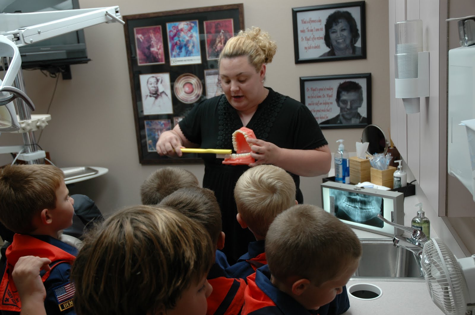 She Is Dallas Info: February is National Children’s Dental Health Month sponsored by the American Dental Association (ADA) to raise awareness about the importance of good dental health for all children, youth and teens. This year's National Children's Dental Health Month poster features the campaign’s slogan “ROCK YOUR SMILE. The website has fun activities for kids as well as presentation information for teachers and parents. The American Dental Association urges parents and caregivers to make sure their children brush twice daily with fluoride toothpaste, floss daily, eat a balanced diet and see their dentist regularly to address tooth decay in its earliest stages. For more information about NCDHM, please visit www.ada.org/ncdhm.Nicholas had a field trip with his Cub Scout den and for the whole drive we were singing the Yuck Mouth song. It was totally appropriate since our field trip was to a dentist’s office to learn all about proper dental hygiene!
