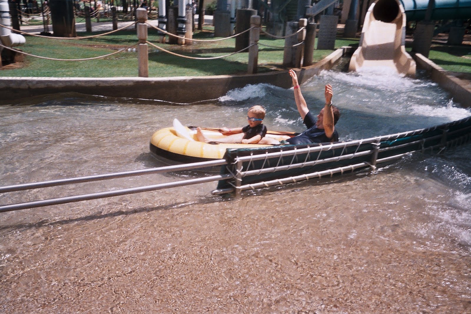 Daddy and Nicholas decided to be adventurous and go down the Green Extreme waterslide. It’s the world’s largest uphill waterslide. It is a seven story tall waterslide with 1,161 feet of twists and turns! Nicholas and Daddy rode together on a two-person innertube.