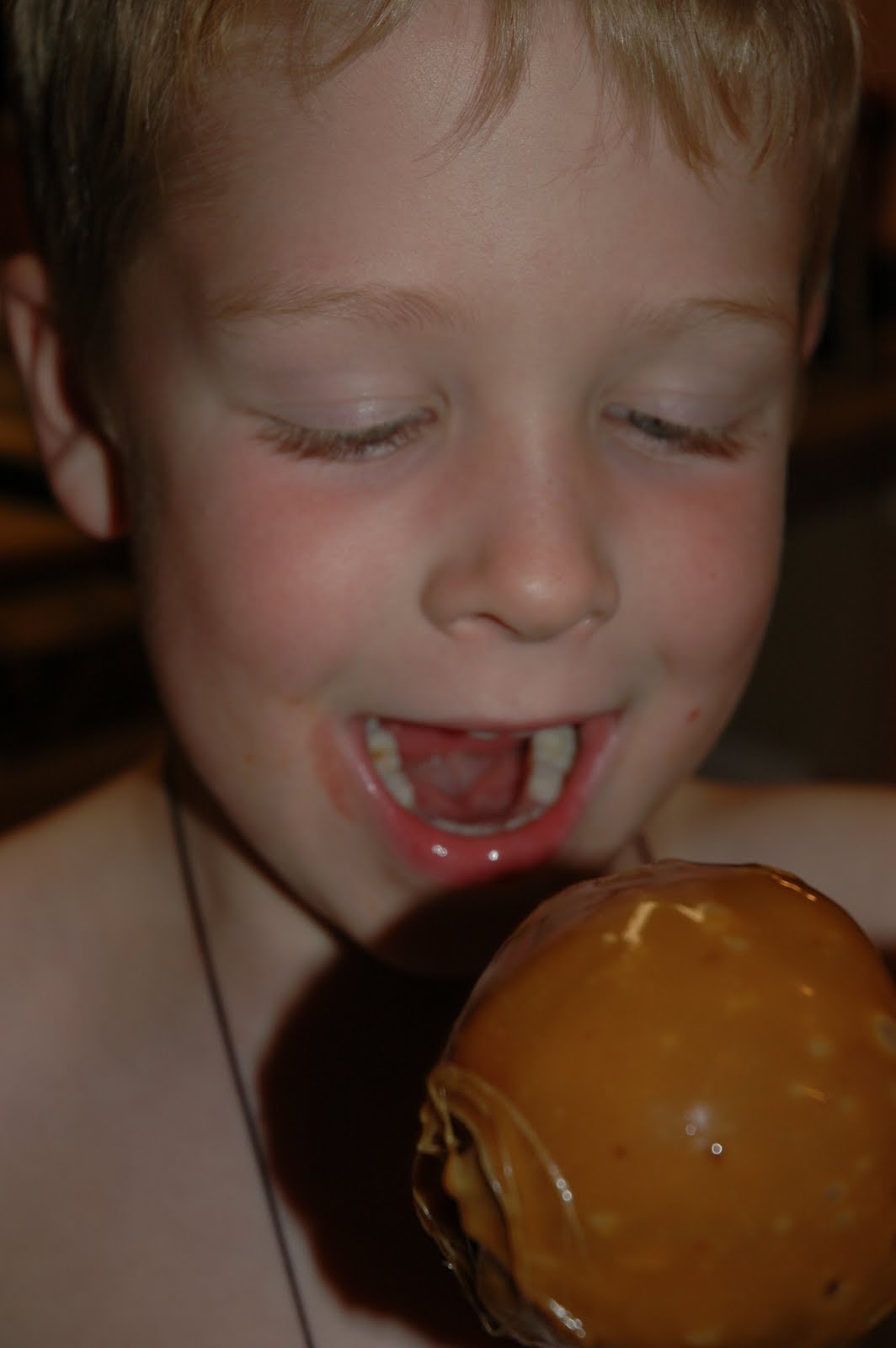 Nicholas was excited to take a bite of his apple.