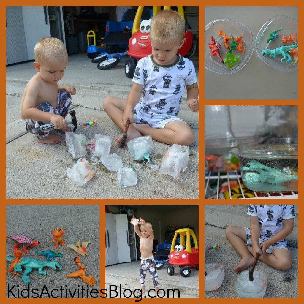 They spent a good two hours playing with the giant ice block and trying to get the dinos out.