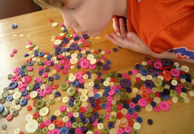Great idea! I don’t know about everyone else, but we have a button box filled with all kinds of buttons we find. I’m not sure why we save them all but now they could be turned into play. Much more useful than ever really needing one for its intended purpose.