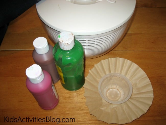 - Salad Spinner or a spinning art machine for kids to make spin art