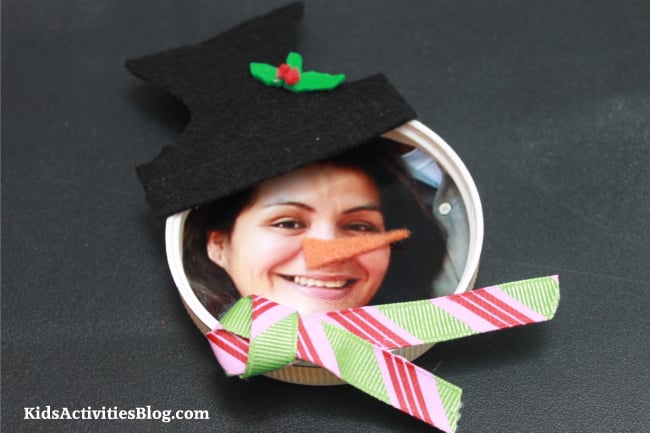 snowman magnet frames. I like to use them on my fridge, file cabinet and anywhere else I can stick them on. One of the things that I love about this craft is that it uses recycled items from around the house.