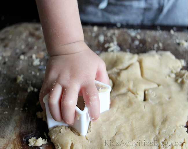 When I invited Mr. E (2yo) to bake some star Christmas cookies, it was met with a very excited, “Yay!”