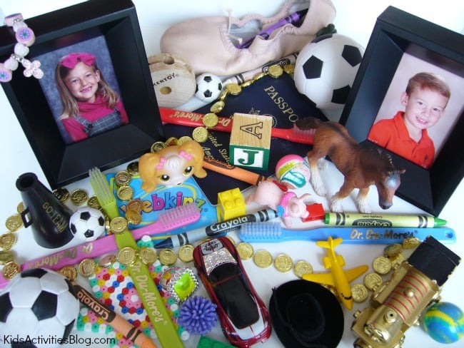 - Find objects in your house (or the store if necessary) that can represent some of the events. For example, we used a small plastic horse to represent us going to Family Camp and riding horses for the first time and a toothbrush for each tooth my daughter had lost that year. Make sure the objects are small enough so that you can fit many in together.