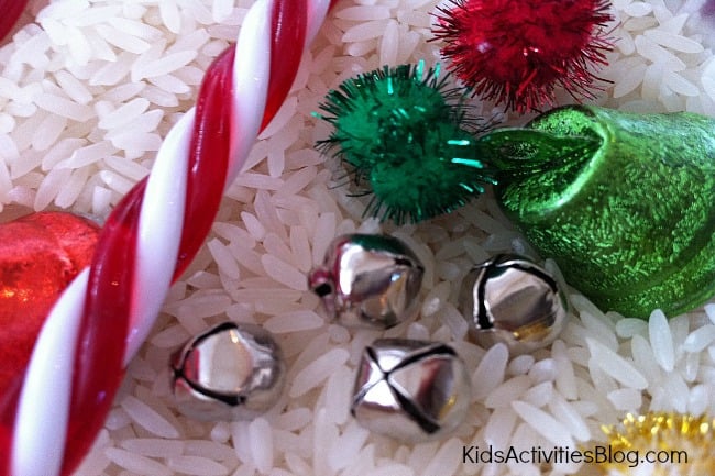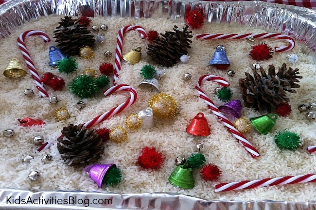 Christmas activities for kids, we loved the thought of the FEELING of Christmas that comes through with this Christmas Sensory Tub. Christmas is touchy, feeling and Kids Activities Blog wants to get in on the fun.