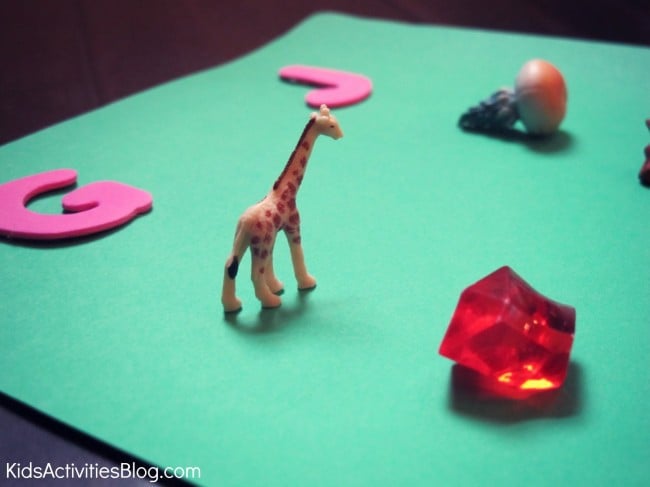 - Sound out “J” and “G” (the same sound) and then sort the objects under their appropriate first letter.