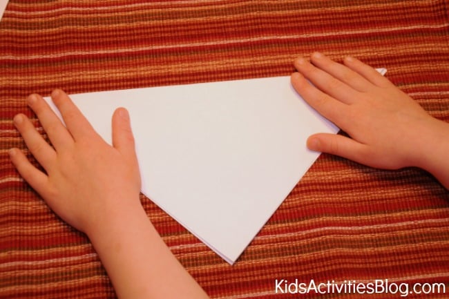 - First, fold the paper in half, corner to corner.