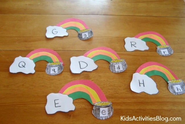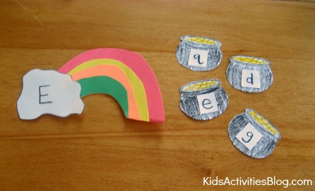You may prefer to put the picture of an object that begins with that letter on the pot of gold. You can then focus on a particular sound a letter makes. If you choose that route, you may have your child brainstorm with your child other words that have the same beginning sound. You can create a list of the words or just discuss them.