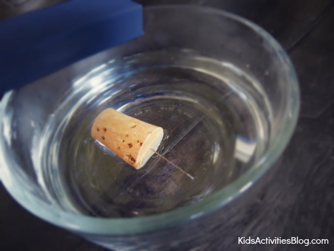 - Stick the needle into the end on the cork