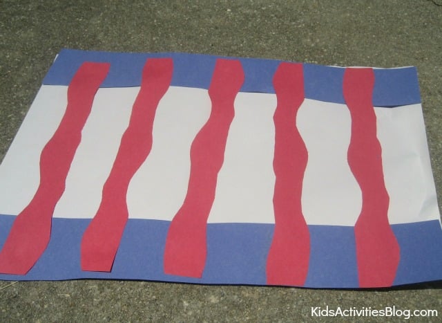 We cut our strips out so they would look wavy. When a flag is waving in a breeze the strips look like this.