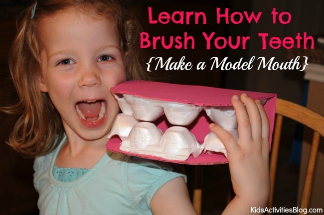 We hope this activity makes it a little more fun to talk to your kids about the importance of caring for your teeth. Â This model mouth has been used many times in our home for both education and fun. Â For more info and kids activities about taking care of your teeth, you might want to bite into a few of these ideas: