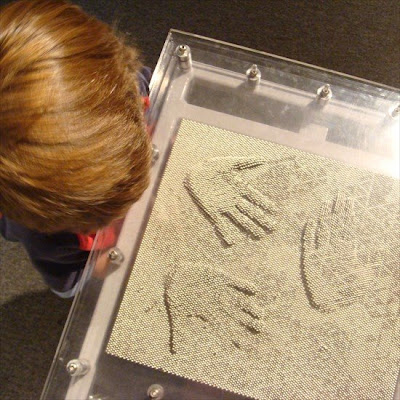 Hand prints are cool. We have one of those at home (only smaller). Your museum looks a lot like the Exploratorium in SF. Kids love it. I just try not to lose any of them.