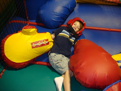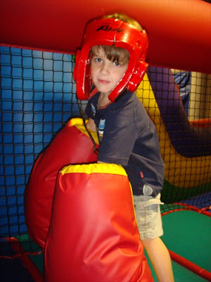 Reid (5) was obsessed with the boxing ring at a local jump house place. He would put on the protective helmet and both very heavy boxing gloves.