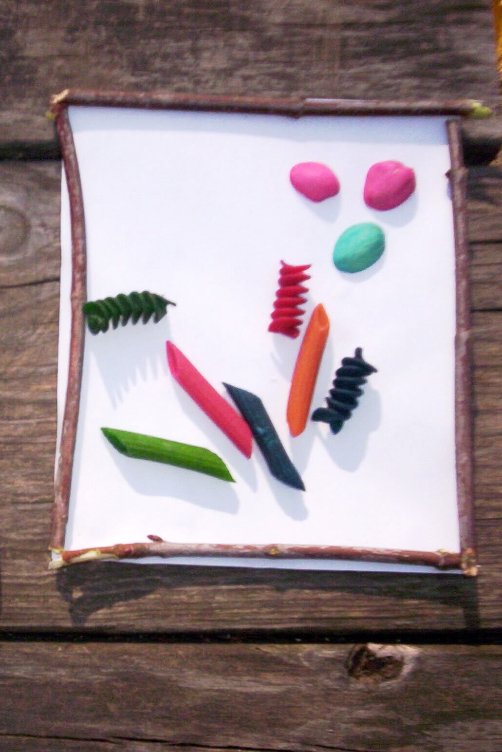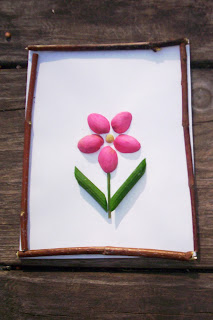 We finally completed the gluing process with our dyed pistachio shells! First the kids and I made some framed art. Theirs turned out to be more abstract than my floral design above.