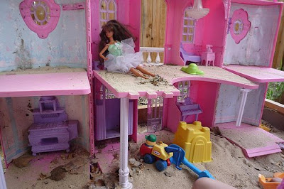 See these days, Barbie is rolling up in her Tonka Dump Truck, to her weathered abode. Shaking her head and wondering where the good old days of glamour have gone?!