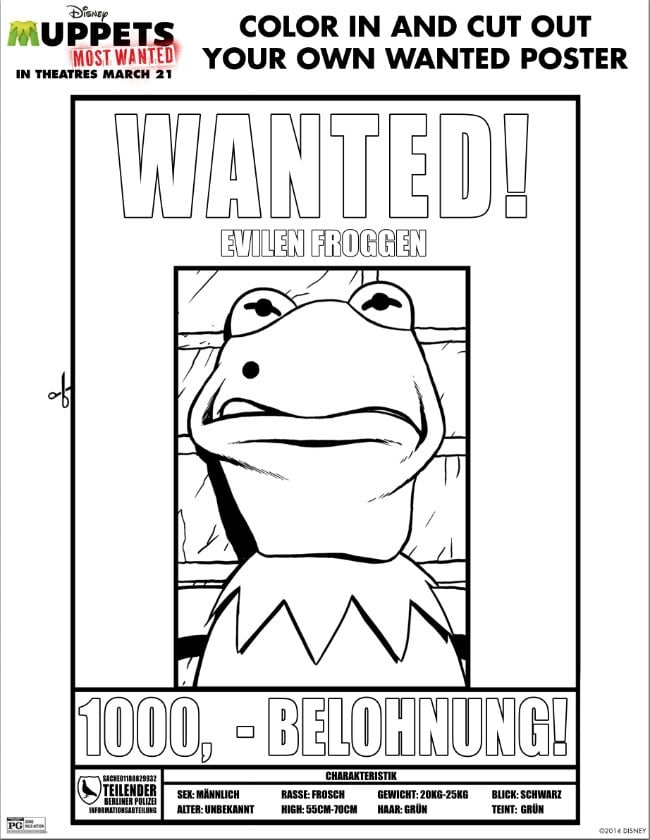 Kermit Wanted Poster Coloring Page